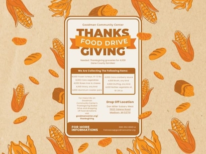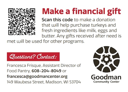 Don Miller Subaru West is proud to partner with Goodman Community Center to help provide everything needed to prepare a traditional holiday meal for 4,000 Dane County families! Please feel free to bring your donations by the dealership and help support our community. Unable to make it by? You can also contribute financially toward buying fresh ingredients for those in need.Â